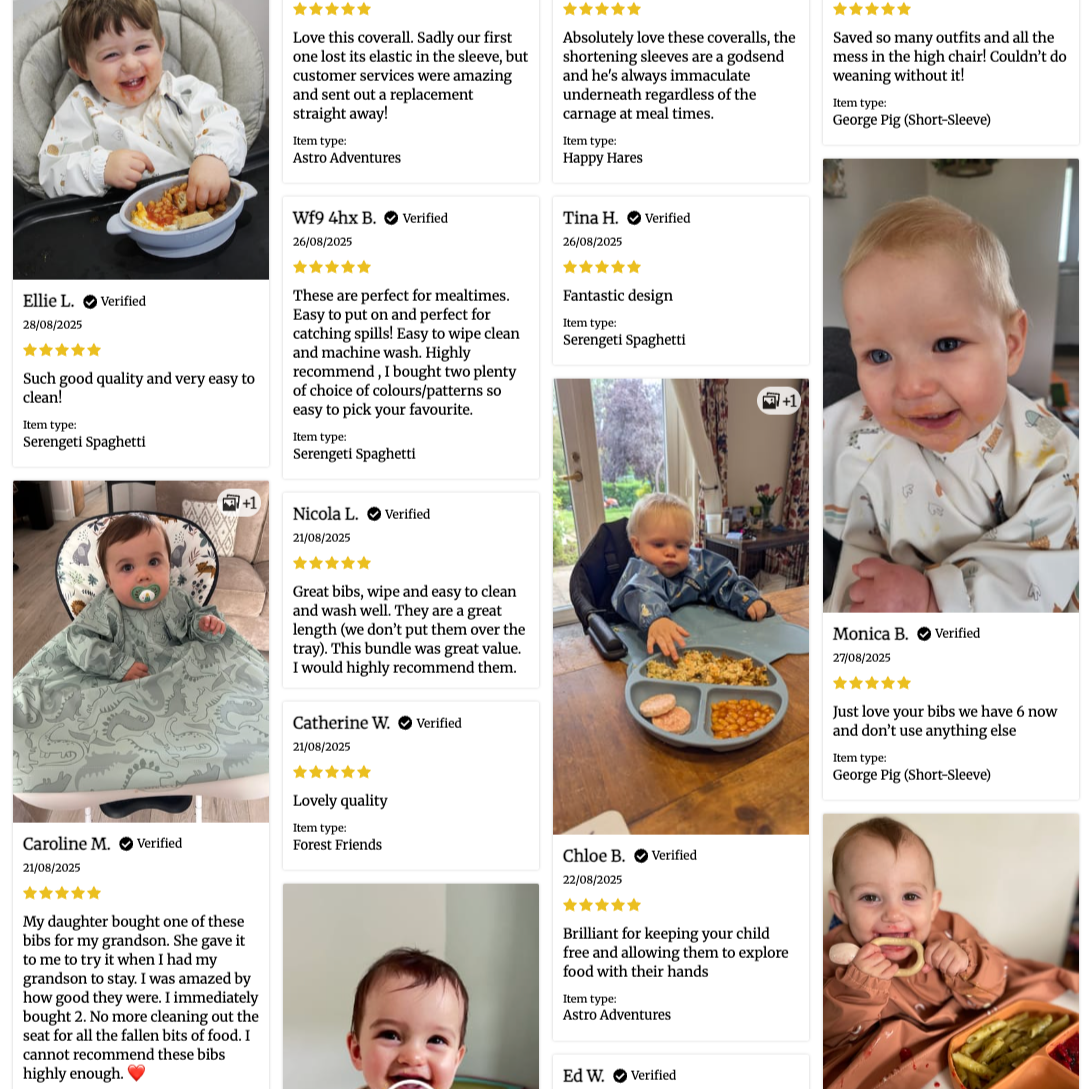 We wereconvinced there had to be a better way to save time on the mammoth post-meal clean-up. So, we created the bib we knew parents needed, and it’s now the number one choice for weaning families.
